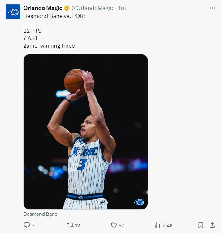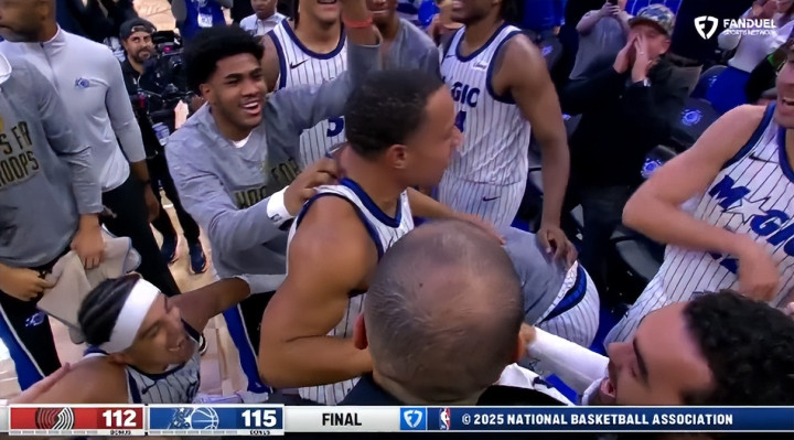 贝恩绝杀开拓者登全美热搜! 魔术助教为他戴皇冠 7换1就等这一刻