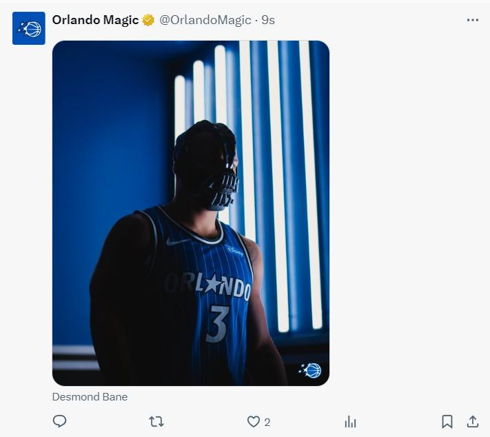 魔术队官方上传了一张贝恩戴着钢铁面具的图片,魔术官推连续发了多条推文都跟贝恩有关,他们想说今夏的7换1没有错!(科尔-安东尼、波普、4个首轮签、1个首轮互换权)